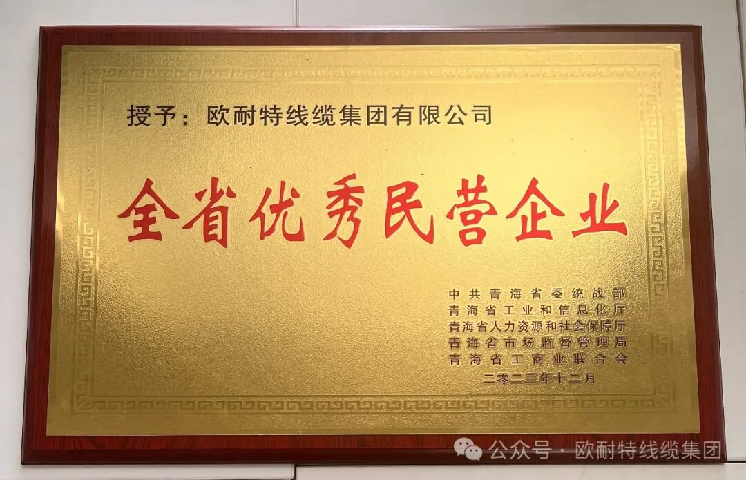 欧耐特线缆集团有限公司荣获省优秀民营企业称号